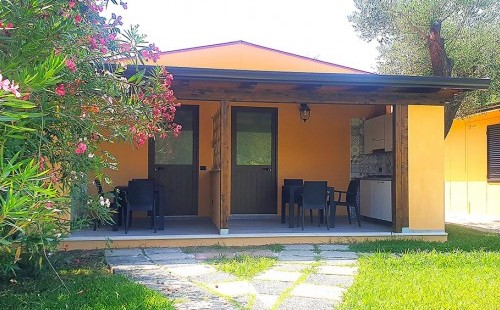 Bungalow prefabbricati da 3/4 posti letto situati al piano terra tutti con camera da letto matrimoniale, soggiornino con un divano letto a 2 piazze ed angolo cottura completo di frigorifero, bagno con doccia a pavimento ed asciugacapelli, tv color, aria condizionata autonoma, telefono diretto, connessione wi-fi, patio esterno attrezzato con tavolino, sedie e giardinetto.